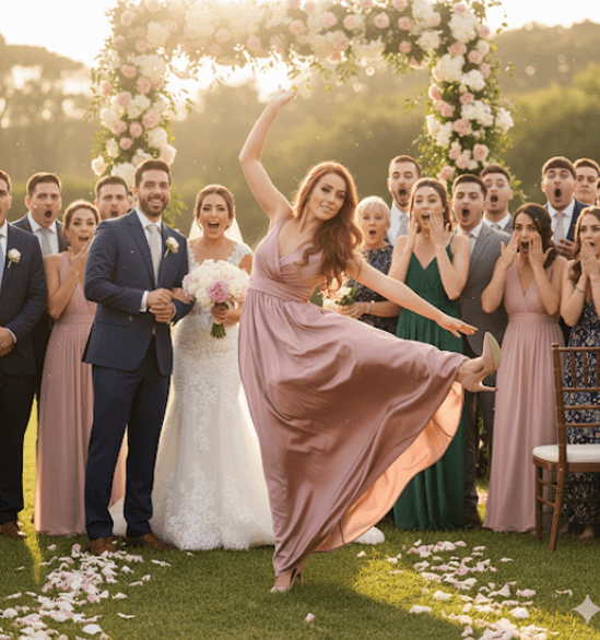 Madrinha tropeçando no salto -Com estilo, claro