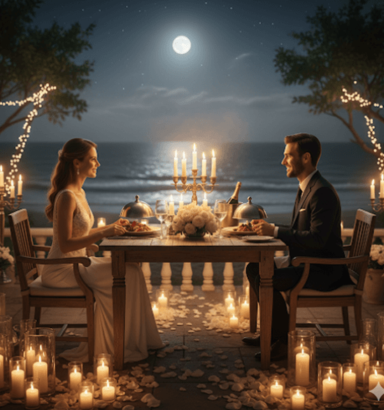 Jantar romântico à luz de velas